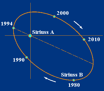 Sīriusa A riņķojums ap Sīriusu B. 4 kb