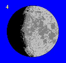 Apmēram 22 dienas pēc jaunmēness iestājas pēdējais ceturksnis un Mēness ir redzams kā pusaplis ar izliekumu uz kreiso pusi |