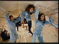 | Kosmosa kuģi Apollo (pa kreisi) un Sojuz. ASV astronauti atrodas Apollo kuģa koniskajā daļā, bet Krievijas kosmonauti – Sojuz kuģa lodveidīgajā daļā. NASA zīmējums | Bezsvars, tiesa, nevis kosmosā, bet brīvi krītošā treniņlidmašīnā. NASA foto |