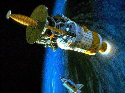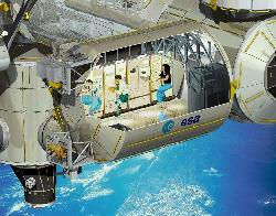| ESA automātiskais transportkuģis ATV apgādās Starptautisko orbitālo staciju. ESA zīmējums | Tā varētu norisināties darbs Starptautiskajā orbitālajā stacijā 2005.gadā. ESA zīmējums |