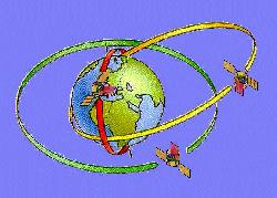 | Navigācijas pavadoņi. Pēc pavadoņu raidītajiem signāliem nosaka lidmašīnas, kuģa vai jebkura cita objekta atrašanās vietu. Attēlā: ASV navigācijas pavadonis GPS. NASA materiāls | ![]() |