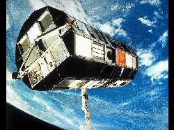 | Izlūkpavadonis. Novēro citu valstu teritoriju un okeānu akvatoriju, pārtver radiosakarus, seko raķešu startiem un kodolizmēģinājumiem. Pirmais izlūkpavadonis bija Midas – 2, kuru 1961. gada 22. maijā palaida ASV. Attēlā: Šis nav militārs pavadonis, bet daudzi citi PSRS palaistie Kosmos sērijas pavadoņi veica militāro izlūkošanu. NASA foto | ![]() |
