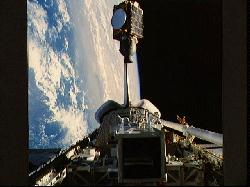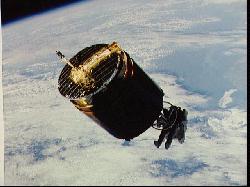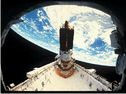 | Sakaru pavadoņa (augšā) palaišana no kosmoplāna. NASA foto | No kosmoplāna atdalās starpplanētu zonde, lai veiktu patstāvīgu startu. NASA foto |