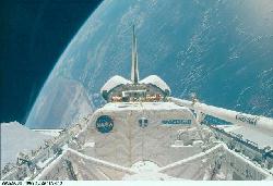 | Laboratorija Spacehab kosmoplāna kravas telpā. NASA foto | Kosmoplānā uzstādītais teleskopu komplekss Astro - 1. NASA foto |