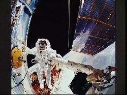 | Autonomā lidojumā palaižama un atkal notverama pētnieciskā platforma. NASA foto | Pavadoņa remonts kosmosā. NASA foto |