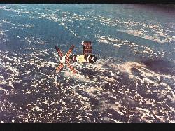 | Sakaru pavadoņi. Nodrošina telefona, datoru u.c. sakarus starp attālām vietām, televīzijas pārraides (satelīttelevīzija), kā arī sakarus starp kosmosa kuģiem un Zemi. Pirmais sakaru pavadonis bija Telstar – 1, kuru 1962. gada 10. jūlijā palaida ASV. Attēlā: starptautiskai korporācijai piederošais sakaru pavadonis Intelsat. NASA foto | ![]() |