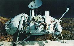 | Marsa zonde Viking. Augšā – orbitālais aparāts, lejā – aizsargčaulā ievietotais nolaižamais aparāts. NASA foto | Zondes Viking nolaižamais aprāts uz Marsa. NASA kolāža. |