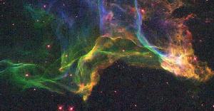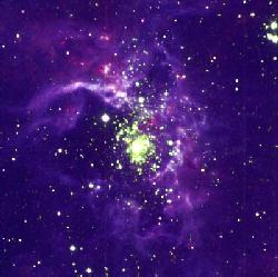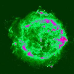 | Pārnovas miglājs Buru zvaigznājā. AURA/NOAO/NSF attēls. 108,1 kb | Pārnovas miglāja Kasiopejas A uzņēmums radiodiapazonā. NASA attēls. 36,9 kb |