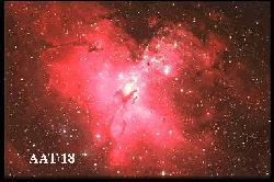 | Emisijas miglājs Ērgļa zvaigznājā. AAT attēls. 18,9 kb | Lielais Oriona miglājs. AURA/NOAO/NSF attēls. 12,2 kb |