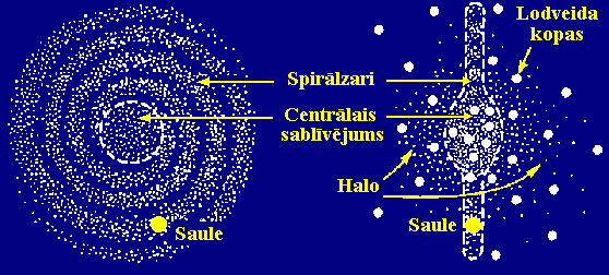 | Disks | 30 | Galaktikas blīvākā daļa, kas atgādina abpusēji izliektu lēcu. Galaktikas diskā atrodas spirālzari |