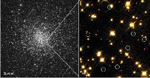 | Lodveida zvaigžņu kopa. AAT attēls. 32,1 kb | Lodveida kopās zvaigznes izvietotas tuvu cita citai. HST/STScI attēls. 111,2 kb |