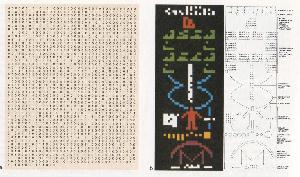 Vēstījums saprāta brāļiem, kas tika nosūtīts kosmosā 1974. gadā. Kreisajā pusē – binārais kods, labajā pusē – raidījuma atšifrējums. NASA attēls. 130,9 kb