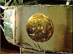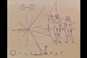| Kosmiskajos aparātos Pioneer-10 un Pioneer-11 uzstādītā plāksnīte. NASA attēls. 48,8 kb | Ar kosmiskajiem aparātiem Voyager-1 un Voyager-2 nosūtītais vēstījums. NASA attēls. 109,1 kb |