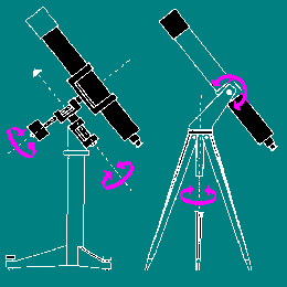 Ekvatoriālais montējums (pa kreisi) un azimutālais montējums (pa labi)