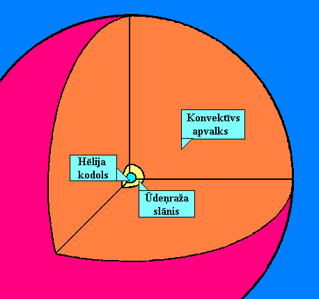 Kad ūdeņraža krājumi kodolā ir gandrīz iztērēti, zvaigznē sākas pārmaiņas. Kodolreakcijas kodolā apstājas, bet slānī ap to turpinās ūdeņraža degšana. No hēlija sastāvošais kodols saspiežas un kļūst karstāks. Tas paātrina ūdeņraža degšanu. Lai pieaugušo enerģijas daudzumu aizvadītu uz ārpusi, zvaigznes apvalks ievērojami izplešas, bet zvaigznes virsmas temperatūra pazeminās. Zvaigzne H-R diagrammā pārvietojas pa labi uz augšu un kļūst par sarkano milzi. Šajā laikā zvaigznes rādiuss ir vairāki desmiti Saules rādiusu, virsmas temperatūra ap 3000 K. Tālākā zvaigžņu evolūcija norisinās samērā strauji un ir atkarīga no to masas. Ja zvaigznes kodola masa nepārsniedz 1,4 Saules masas un pilnā masa nepārsniedz 8 Saules masas, tālākas kodolreakcijas nenotiek. Zvaigzne nomet apvalku, bet tās centrālā daļa strauji saspiežas, kļūstot par balto punduri.