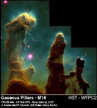 Molekulārā ūdeņraža mākoņi Ērgļa miglājā Čūskas zvaigznājā. HST/STScI attēls. 54 kb