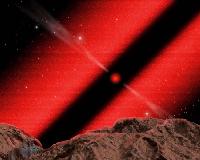 Skats no iedomātas planētas uz pulsāru. Zīmējums. HST/STScI attēls. 43 kb