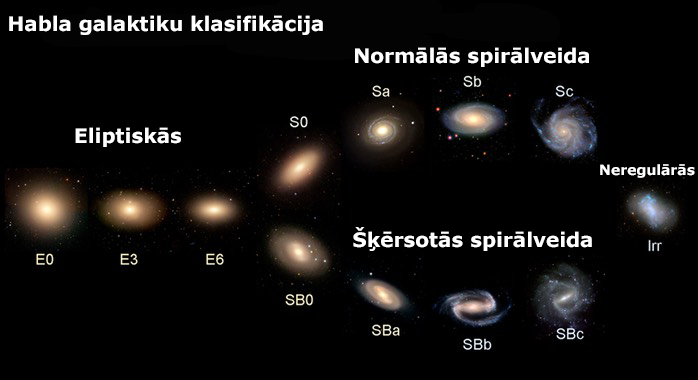 Galaktiku klasifikācija: Pēc formas galaktikas iedala trīs tipos – eliptiskās, spirālveida un nerergulārās.