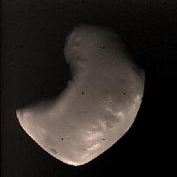 | Marss, kā tas izskatās spēcīgā teleskopā no Zemes. NASA/JPL attēls. 35 kb | Marsa pavadonis Foboss nosacītās krāsās. NASA/JPL attēls. 22 kb |