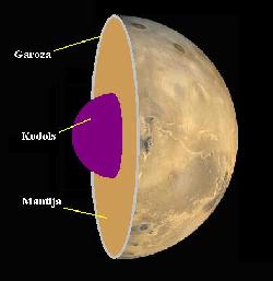 | Marsa virsmas fragments. Redzama gravu sistēma un meteorītu krāteri. NASA/JPL attēls. 75 kb | Marsa uzbūve. 19 kb |