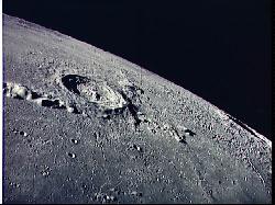 | Mēness. NASA attēls. 40 kb | Mēness krāteris. NASA attēls. 58 kb |