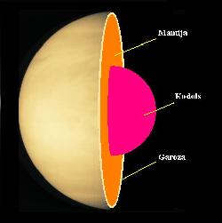 | Venēra bez mākoņiem. Attēls iegūts ar radiolokācijas metodi. NASA/JPL attēls. 49 kb | Venēras uzbūve. 18 kb |