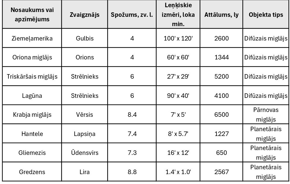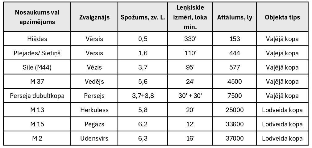 Tabula 5: Dati par dažām zvaigžņu kopām