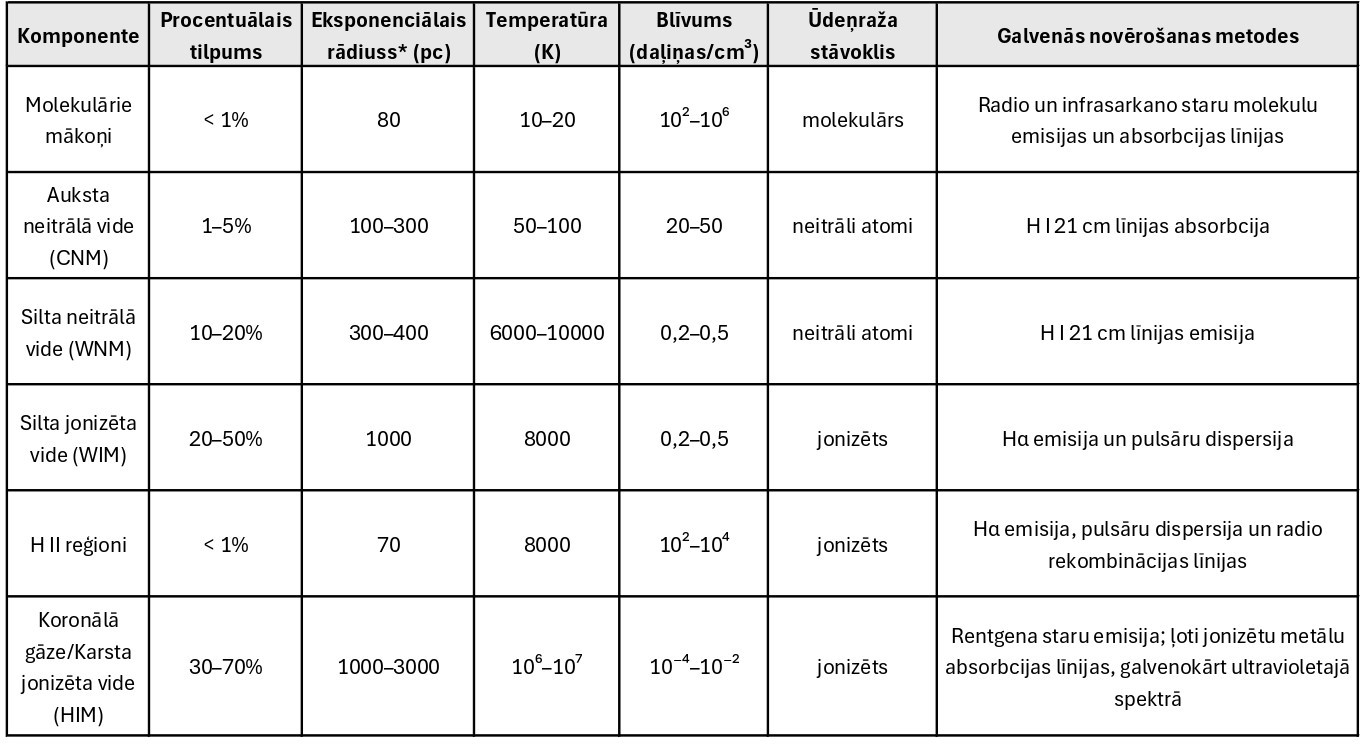 Tabula 6: Starpzvaigžņu vides dažādās fāzes (* - rādiuss, kad blīvums ir samazinājies par e jeb 2.72)
