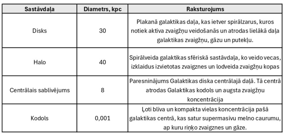 Mēs dzīvojam zvaigžņu sistēmā, ko sauc par Galaktiku. Lai atšķirtu to no citām, vārdu “Galaktika” raksta ar lielo burtu. Galaktika ir grandioza “zvaigžņu pilsēta” - tajā ir aptuveni 200 miljardi zvaigžņu. Ja būtu iespējams paskatīties uz Galaktiku no malas, tā izskatītos kā plāns disks ar biezāku centrālo sablīvējumu. Raugoties uz Galaktiku no augšas, varētu redzēt spirālzarus, kas atzarojas no centra (1. att.). Galaktikas disku apņem Galaktikas sfēriskā sastāvdaļa – halo, kurā ir maz zvaigžņu, tāpēc tā saskatāma ar grūtībām.