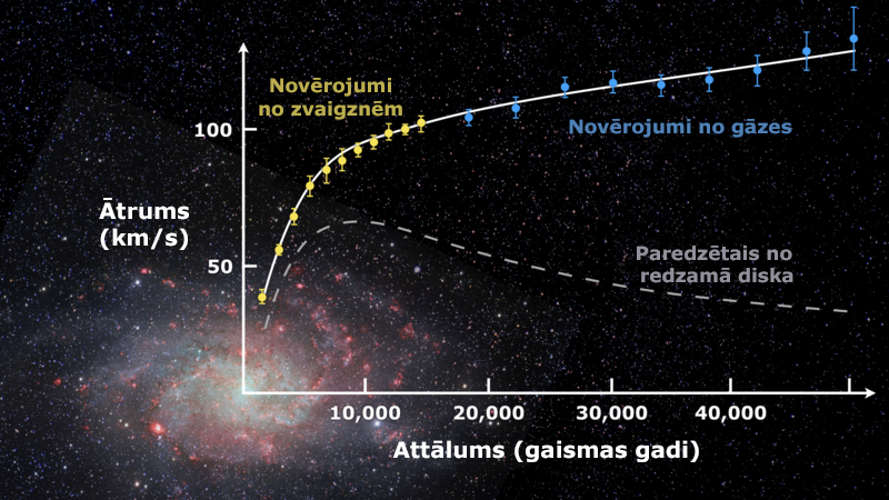 5. att. Rotācijas grafiks vizualizācija, kas liek secināt par tumšās matērijas esamību (Mario De Leo attēls)