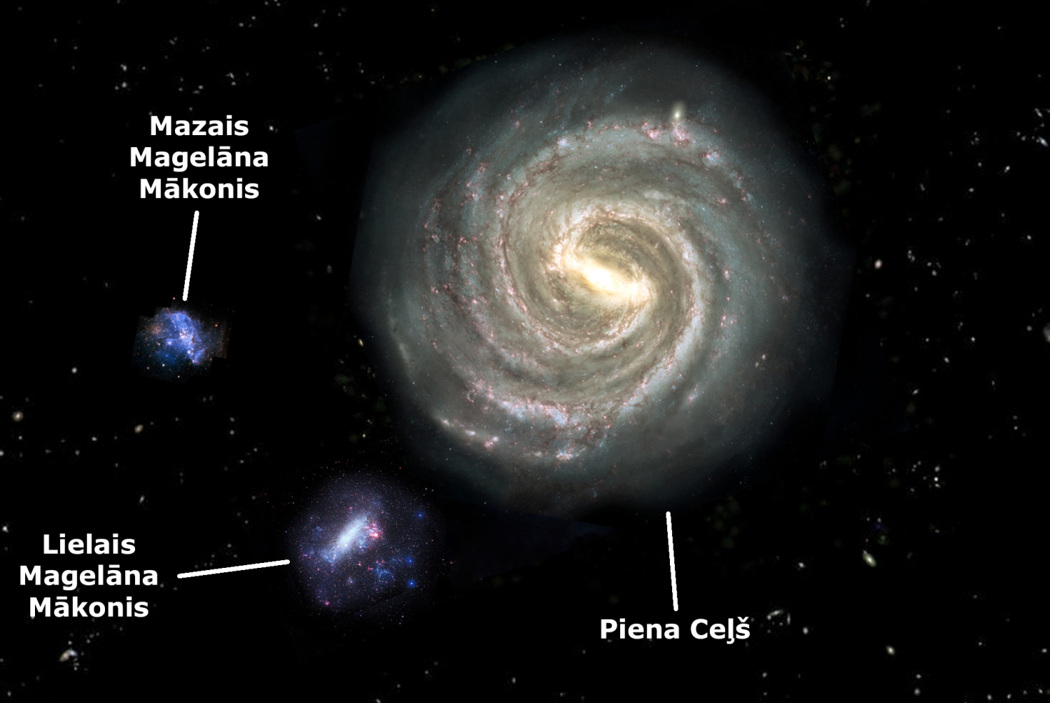 Ap Galaktiku atrodas vairāk kā 60 pundurgalaktikas, kur dažas no tām arī orbitē Galaktiku. Līdzīgi kā Saulei ir savas planētas, tad Galaktikai ir savas pundurgalaktikas. Vairākas no tām tika noķertas, lidojam garām. Paši zināmākie ir Magelāna mākoņi (15. att.) - Lielais Magelāna mākonis un Mazais Magelāna mākonis -, kas jau ir novēroti simtiem gadu atpakaļ. Pirmais tos ieraudzīja portugāļu pētnieks Fernenands Magelāns, pēc kura tie arī ir nosaukti.