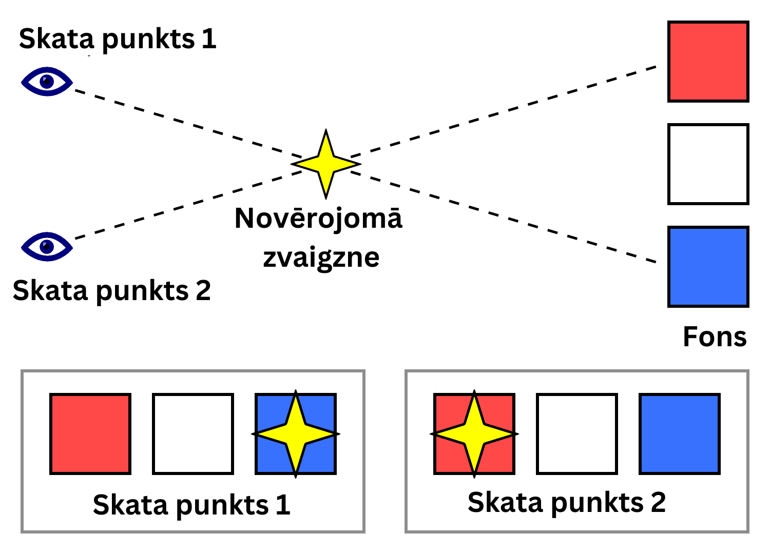 Attālumus līdz zvaigznēm zinātnieki centās noteikt jau kopš 17. gadsimta. Viņi sprieda tā - ja Zeme riņķo ap Sauli, tad, raugoties no dažādiem Zemes orbītas punktiem, tuvai zvaigznei vajadzētu šķietami nedaudz pārvietoties attiecībā pret tālajām zvaigznēm. Jo tālāka zvaigzne, jo šī nobīde mazāka. Tādu pašu efektu var panākt, turot acu priekšā pildspalvu un pārmaiņus skatoties uz to gan ar vienu, gan otru aci - pildspalva “lēkā” - pārvietojas attiecībā pret fonu. Taču zvaigžņu pārvietošanās efektu, ko sauc par zvaigžņu gada paralaksi (6. att.), nekādi neizdevās konstatēt. Tikai sākot ar 1837. gadu astronomiem izdevās noteikt attālumu līdz tuvākajām zvaigznēm. Zvaigžņu attāluma noteikšana bija saistīta ar lielām grūtībām, jo bija jāizmēra ļoti niecīgs leņķis. Pat pašai tuvākajai zvaigznei - Centaura Alfa paralakse ir mazāka par vienu loka sekundi. Šis attalums ir salīdzināms ar futbola bumbu, uz kuru skatītos no 20 kilometru attāluma. Mūsdienās zvaigžņu attāluma noteikšanai izmanto speciālas orbitālās observatorijas. Gaia ir ESA orbitālā observatorija, kas tika palaista 2013. gadā, ar kuru ir novērotas milijards paralakses zvaigznēm. Gaia vēljoprojām aktīvi darbojas un turpina papildināt zvaigžņu katalogus ar jaunu informāciju.