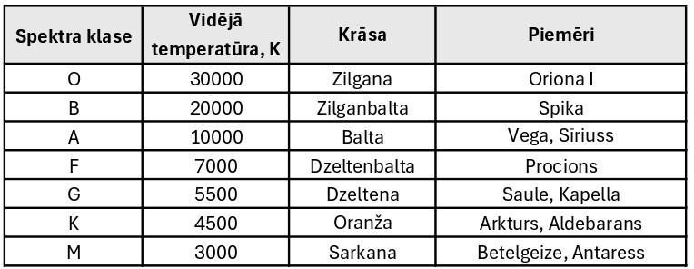 Tabula 1: Zvaigžņu spektrālā klasifikācija